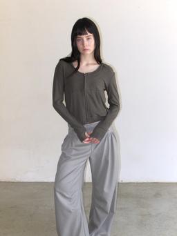 • 피플스타일 double waist camouflage raw edge stitching wide leg scimitar pants