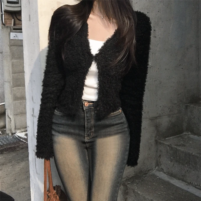 • 소녀레시피 리멜로 스트라이프 카라 니트 가디건 cd