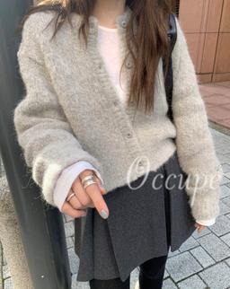• 러브모먼트 레이블 브이넥 퍼프 리본 블라우스