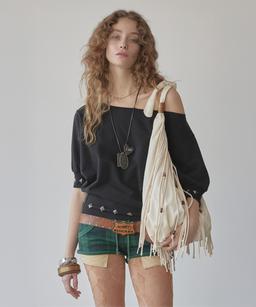 • 배드블러드 클래식 로고 오프숄더 탑 - 블랙