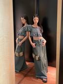 예요 YEYO의 빈티지 퍼프 크롭 데님 셔츠 스커트 코디 상품입니다. 현재 74% 할인 중으로, 9,000원에 구매 가능합니다.