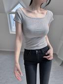 코튼블랙의 [진짜핏이쁜] 스퀘어넥 세미크롭 골지 캡소매 반팔티 3컬러 상품입니다. 현재 가격은 12,990원입니다.