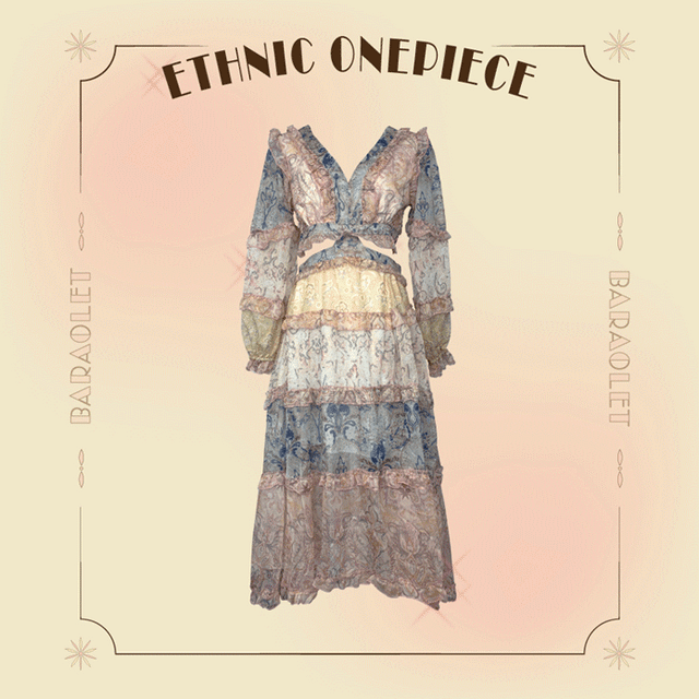 바라올렛의 [러블리·빈티지] 보헤미안 에스닉 패턴 쉬폰 맥시 트임 캉캉 원피스 상품입니다. 현재 가격은 47,400원입니다.