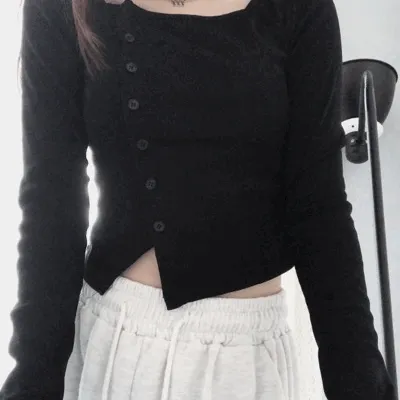 옥유의 사선 단추 크롭 가디건 긴팔t ( 4color ) 상품입니다. 현재 가격은 15,500원입니다.