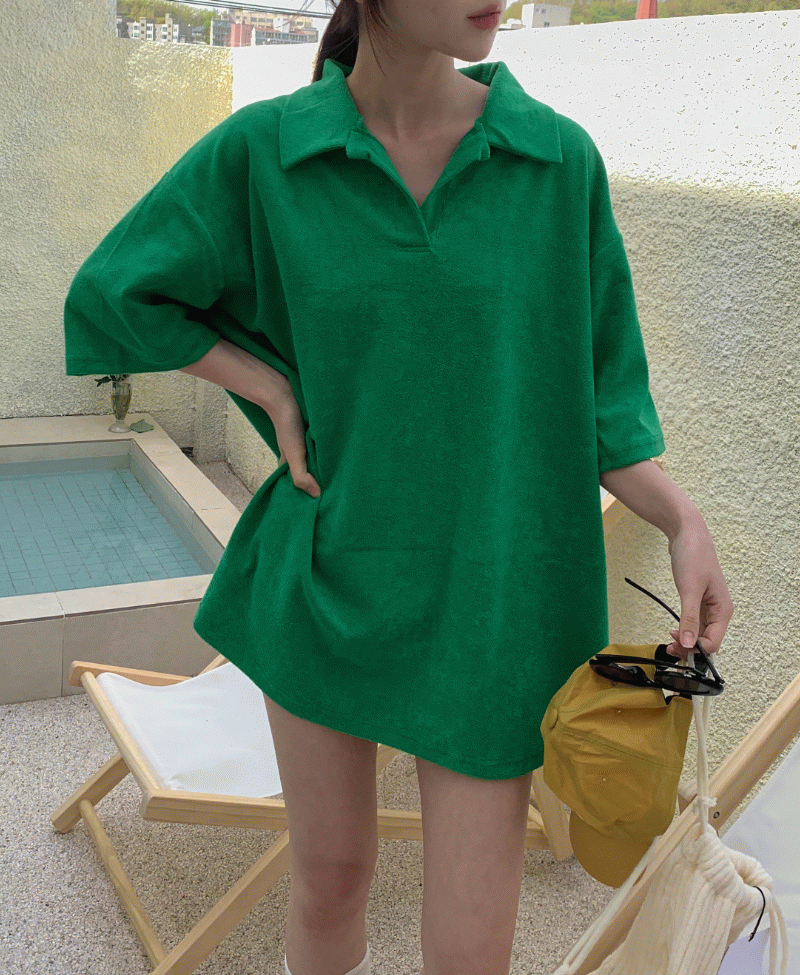 파운드의 허니 타올 비치 바캉스 테리 카라 원피스 롱 티셔츠 [수영복커버업,워터파크,비치웨어] 상품입니다. 현재 15% 할인 중으로, 34,100원에 구매 가능합니다.