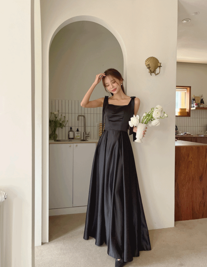 모반디의 양리본 블랙 셀프웨딩 원피스, 민소매 브라이덜샤워 스냅촬영 새틴 2부 드레스 상품입니다. 현재 가격은 73,800원입니다.