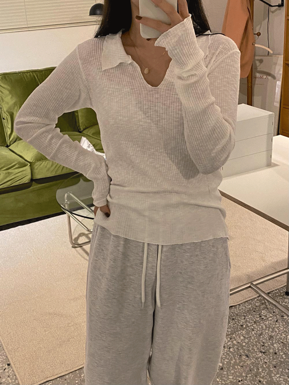 유어 봄의 ♡당일출고/레이어드 추천♡ 오프닝 루즈핏 골지 브이넥 카라 티셔츠 - t 상품입니다. 현재 가격은 22,000원입니다.