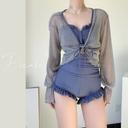 커브미의 M-2XL 빅사이즈 쟈스민 모노키니 커버 로브 가디건 투피스 세트 수영복 상품입니다. 현재 가격은 34,900원입니다.
