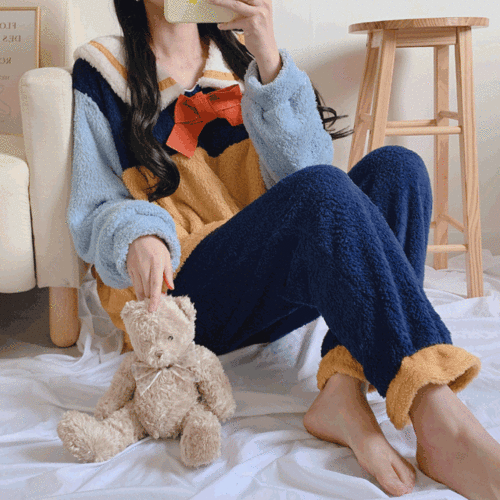 초코블랑의 [당일발송] 빨강 리본 파자마 수면 잠옷 세트 상품입니다. 현재 가격은 23,900원입니다.