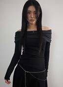 애즈온의 DAISY OFF-SHOULDER TEE / BLACK / 2.28 순차 발송 예정 상품입니다. 현재 가격은 51,000원입니다.