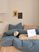 남매 점빵의 블루 그린 스트라이프 코튼 침구 커버 세트 4피스 상품입니다. 현재 가격은 125,000원입니다.