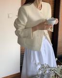 오직유의 verveine 버베인 엘린 울 트위드 자켓 긴팔 라운드 노카라 숏 싱글 포켓 jk 상품입니다. 현재 가격은 168,000원입니다.