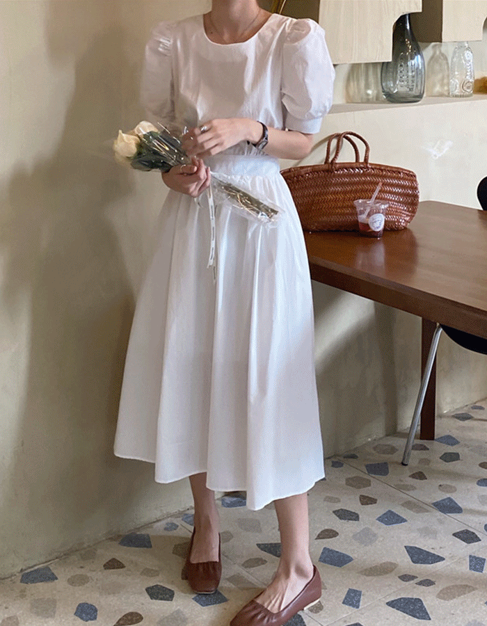 타니즈의 버블 백트임 뒷단추 퍼프 A라인 밴딩 롱원피스 - 3 Color 상품입니다. 현재 34% 할인 중으로, 23,900원에 구매 가능합니다.