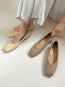 사뿐의 드엘라 스퀘어 플랫슈즈 (2cm) 상품입니다. 현재 34% 할인 중으로, 37,170원에 구매 가능합니다.