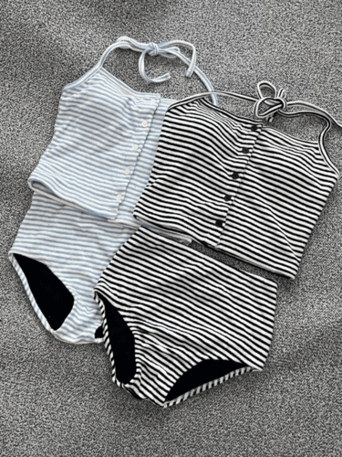 인더지아의 스트라이프 홀터넥 테리 버튼 하이웨스트 비키니 상품입니다. 현재 10% 할인 중으로, 44,010원에 구매 가능합니다.