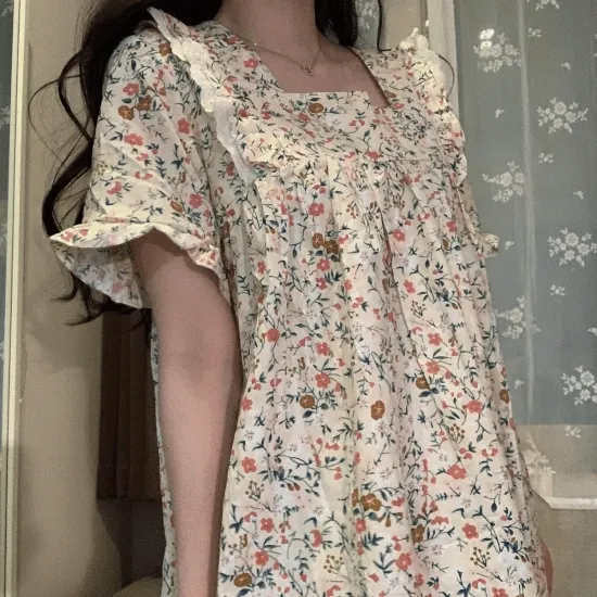 라포즈의 [당일출고/순면] 꽃만발 화사한 순면 레이스 러플 스퀘어넥 원피스 파자마 잠옷 상품입니다. 현재 가격은 22,200원입니다.