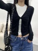 유데모닉의 프릴 꼬임 티셔츠 (2col) 상품입니다. 현재 가격은 27,900원입니다.