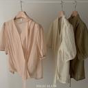 하이슬로우의 보니 타이 블라우스 /하객룩 여름요루 반팔 랩 블라우스 상품입니다. 현재 가격은 38,000원입니다.
