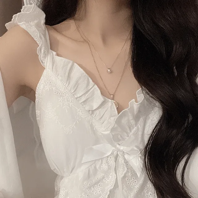 라포즈의 [당일출고] 화이트 순면 레이스 민소매 파자마 잠옷 원피스 ver. (패드내장) 상품입니다. 현재 8% 할인 중으로, 21,200원에 구매 가능합니다.