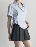 라운지401의 클립 사이드 리본 반팔 셔츠 블라우스 [4color] 상품입니다. 현재 5% 할인 중으로, 43,700원에 구매 가능합니다.