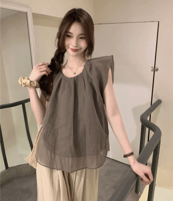 반하니의 반하니 소베린❤️민소매 라운드 프릴 린넨 블라우스 2color 상품입니다. 현재 50% 할인 중으로, 24,800원에 구매 가능합니다.
