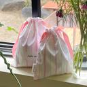 오브누잇의 오브누잇 프렌치 스트라이프 스트링 파우치 백 2 Size_핑크 상품입니다. 현재 가격은 18,500원입니다.