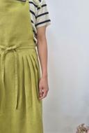 린넨샵열음의 lituania linen yellow green pleats skirt apron 옐로우 그린 플리츠 스커트 에이프런 상품입니다. 현재 가격은 80,000원입니다.