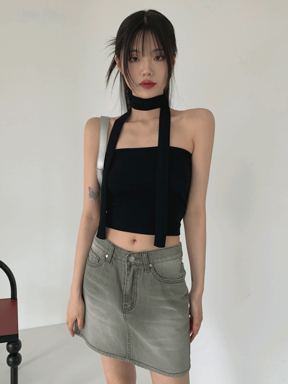 하이리밋의 바얀트 머플러 타이 크롭 나시 상품입니다. 현재 가격은 18,900원입니다.