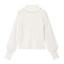디어마이러브로즈 의 袖チュールラウンドビジューハイネックニットトップス【大きいサイズ有】 - ホワイト / M-L 상품입니다. 현재 40% 할인 중으로, ¥2,994에 구매 가능합니다.