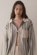 이콤마이의 COZY KNIT CARDIGAN (IVORY STRIPE) 상품입니다. 현재 7% 할인 중으로, 119,040원에 구매 가능합니다.