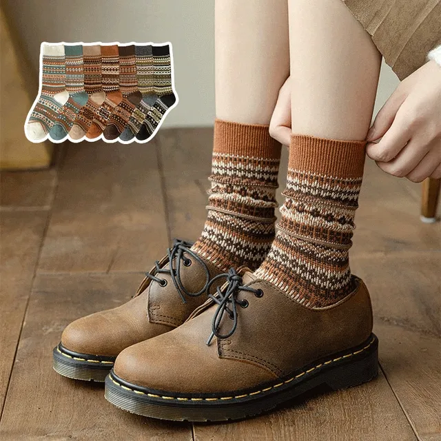 우물의 [2개 이상 할인] 보헤미안 도톰한 가을 겨울 에스닉 패턴 고급 니트 면 양말 7종 상품입니다. 현재 28% 할인 중으로, 5,200원에 구매 가능합니다.