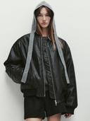 Le의 faux leather padded bomber jacket (black) 상품입니다. 현재 가격은 386,000원입니다.