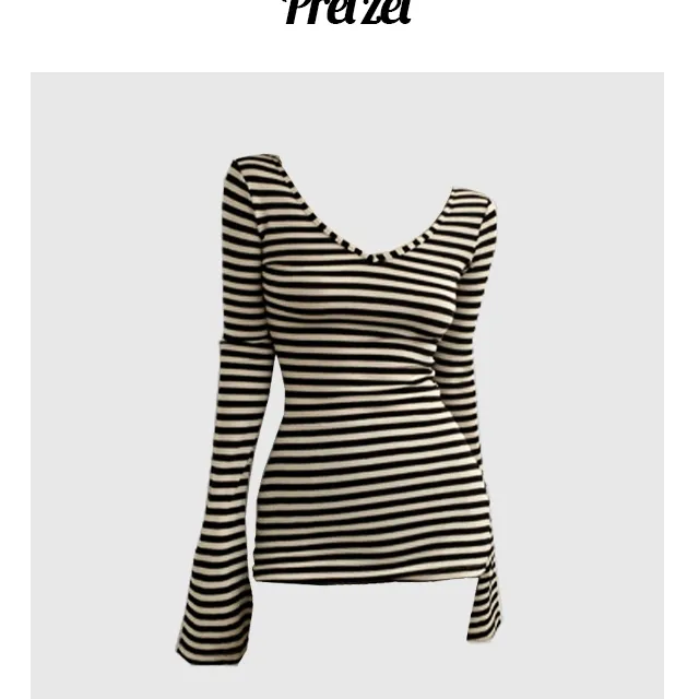 프레첼의 베이커 스트라이프 슬림 롱 긴팔 상품입니다. 현재 40% 할인 중으로, 21,200원에 구매 가능합니다.