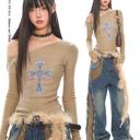 UNCMHISEX의 UNCMHISEX 원숄더 십자가 핫픽스 슬림 니트 롱슬리브 티셔츠 상품입니다. 현재 가격은 52,000원입니다.