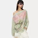 YOSHUYUKI의 YOSHUYUKI 요슈유키 니트 그린 플로럴 캐주얼 오프숄더 니트 블라우스 상품입니다. 현재 가격은 109,000원입니다.