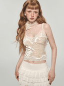 1JINN STUDIO 슬리브리스 벨벳 레이스 크롭 탑 (3컬러)