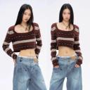 CURRIGES 의 CURRIGES 니트 브라운 스퀘어 넥 풀오버 크롭 스웨터 상품입니다. 현재 가격은 78,800원입니다.