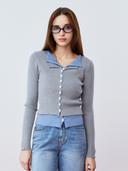 배색 레이어드 카라 가디건 (그레이)