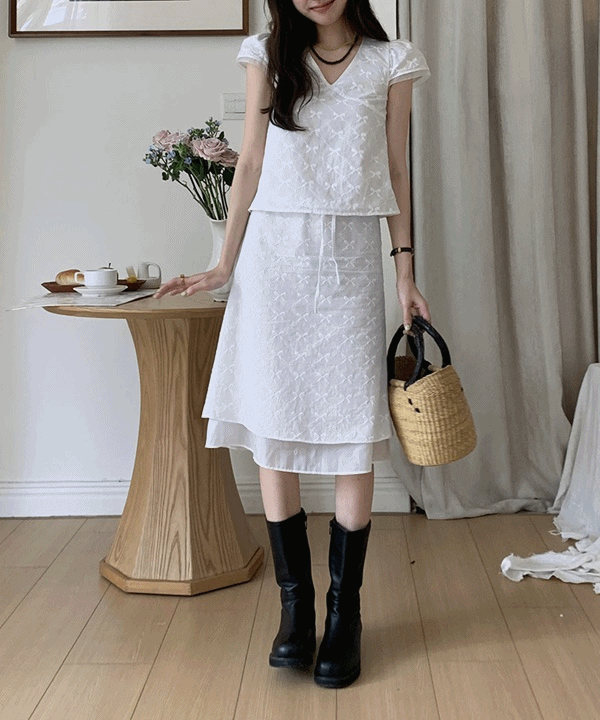 일루아의 일루아 [여름신상💙]로즈 리본 패턴 브이넥 블라우스 미디 스커트 투피스 코디세트#휴양지룩 상품입니다. 현재 11% 할인 중으로, 41,800원에 구매 가능합니다.