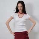 Lvetong의 LVETONG 복고풍 브이넥 카라 꽃무늬 슬림 반팔티 초커세트 상품입니다. 현재 가격은 82,000원입니다.