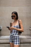 메쉬키의 Marcie Sleeveless Knit Top - Navy Gingham 상품입니다. 현재 가격은 £35.00입니다.
