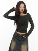 클로즈클립의 메로 단가라 오프숄더 긴팔티 CB1408 상품입니다. 현재 가격은 14,000원입니다.