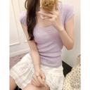 U넥 퓨어디자이너 얇은 니트 반팔 티셔츠 여성 여름 스트레이트 숄더 슬림핏 화이트 숏 바텀 스몰 탑 상품입니다. 현재 가격은 66,007,600원입니다.