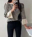(무배) 입술넥 스트라이프 단가라 니트