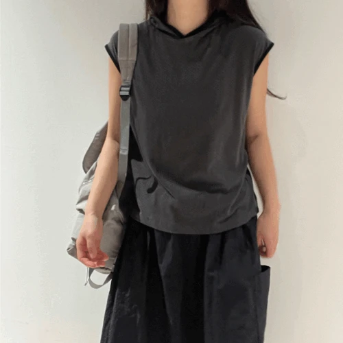 스테이데이의 후드 도트 민소매 포인트 배색 티셔츠 상품입니다. 현재 가격은 28,100원입니다.