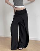 디자이너 컬렉션의 블랙 레이스&플라이패치드 레이핑 와이드 슈트팬츠 바지 | 후루츠패밀리 상품입니다. 현재 가격은 17,000원입니다.