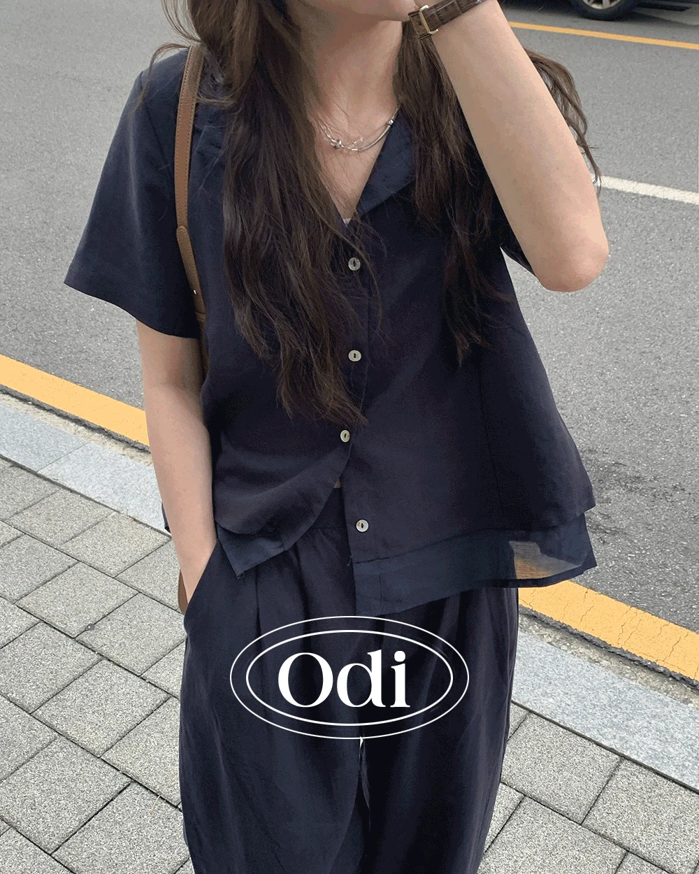 오디파이의 멜즈 bl 린넨 반팔 레이어드 투웨이 셋업 블라우스 (3컬러) 상품입니다. 현재 가격은 33,800원입니다.
