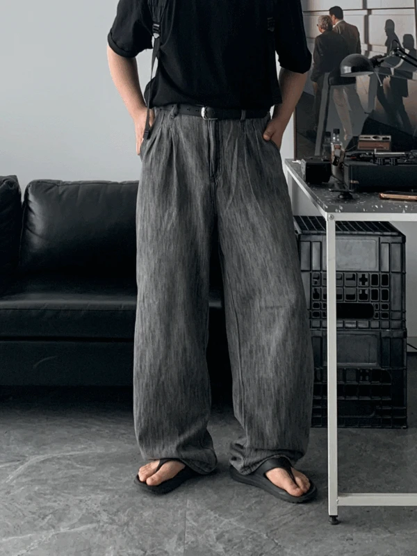 클로종의 **브러쉬 핀턱 와이드 데님 팬츠 (하루주문량50개 돌파!) 상품입니다. 현재 50% 할인 중으로, 19,500원에 구매 가능합니다.