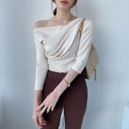 제니엘의 크림오늘출발 [5color] 7부 오프 실켓 언발 드레이프 셔링 입술넥 티셔츠 블라우스 상품입니다. 현재 가격은 26,900원입니다.