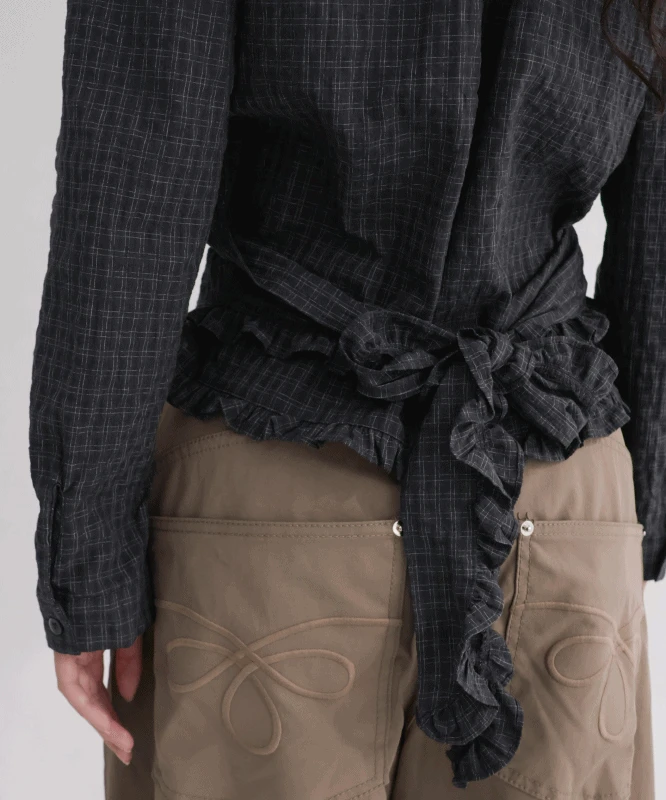틸데서울의 미스티 체크 프릴 스트랩 셔츠 2color 상품입니다. 현재 가격은 43,500원입니다.